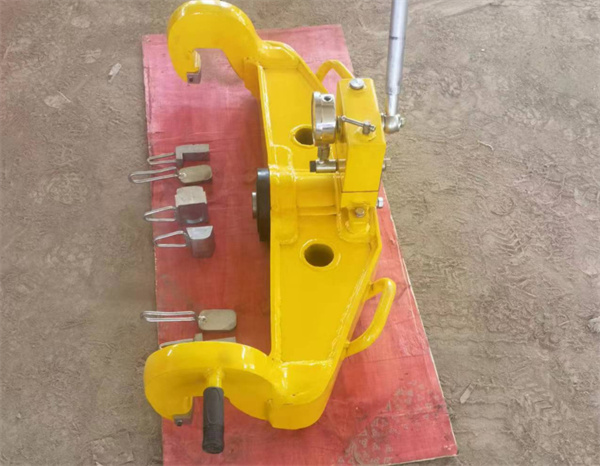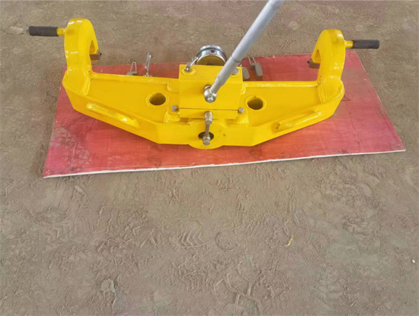 YJT-500液压尖轨直轨器作业时,将该机水平放置于尖轨或普通钢轨上,液压缸活塞杆的顶块对准尖轨或普通钢轨变形位置的轨腰中心处,钩轨臂钩紧另侧轨腰中心。搬动手压泵搬杆,活塞杆伸出,顶块顶紧轨腰,同时,两侧钩轨垫铁也钩紧轨腰,往复搬动手压泵搬杆,向液压油缸供油,系统压力增高,活塞杆及顶块推力加大,在两侧钩轨臂的支承下,尖轨或普通钢轨产生变形,直至产生塑性变形,将尖轨或普通钢轨调直或弯曲。