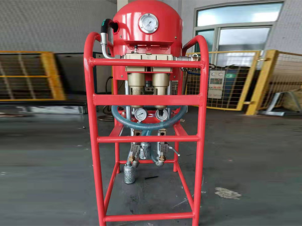 煤矿用气动双液注浆泵以压缩空气为动力源,由于气缸和注浆缸具有较大的作用面积比,从而以较小的气压便可使注浆缸产生较高的注浆压力。