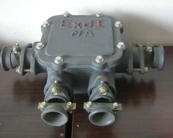 BHD矿用隔爆型母线盒主要由壳体、盖体、内部接线和接地装置、电缆引入装置等组成。壳体、盖体材质为HT250灰铸铁,内部接线装置绝缘体为上釉陶瓷。
