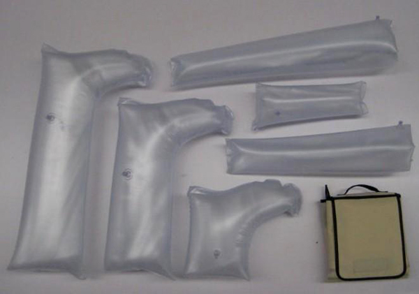 充气夹板是有PVC材料制成,防火,表面韧性较强,不易被损坏,在使用中如果脏了可以放心的放在水中洗涤不要担心会坏掉,充气夹板在真空的状态下可以发挥像石膏一样的作用把伤员的骨折或者脱臼的部位个固定住保持70个小时以上,躯体固定器可以按照伤员的各种形态的变化,也可以与X光、CT、MRI检查配套。