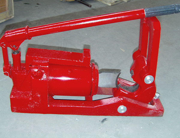 3、顺时针方向拧紧回油阀杆,然后将揿手上下揿动,动刀随活塞向外伸出进行切割钢丝绳,钢丝绳切断后,将回油阀杆逆时针方向旋松,动刀自行渐渐返回。