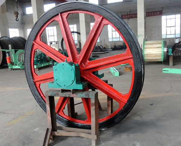 天轮安装在井架上,作支撑,供矿井提升时支拖提升机卷筒到提升容器之间,引导钢丝绳转向之用。绳槽带塑衬或胶块,增加钢丝绳的使用寿命。